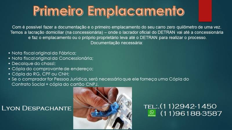 onde encontro primeiro emplacamento para carro zero Rio Grande da Serra