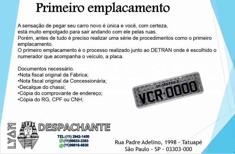 onde encontrar primeiro emplacamento veículo leve Ribeirão Pires