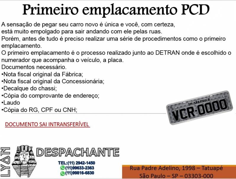 primeiro emplacamento pcd para veículo preço Embu das Artes